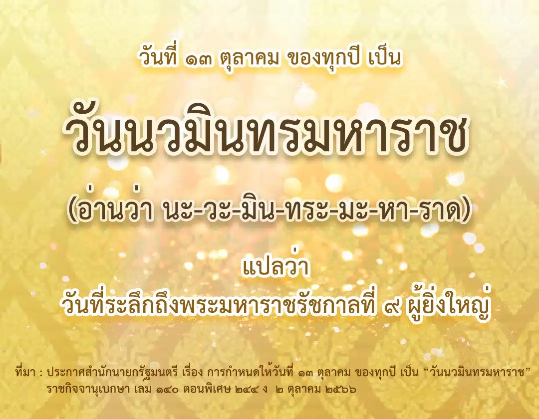 สำหรับความหมายของวันนวมินทรมหาราชนั้น ทางสำนักงานราชบัณฑิตยสภาได้ให้ความหมายไว้ว่า วันที่ระลึกถึงพระมหาราชรัชกาลที่ 9 ผู้ยิ่งใหญ่ อ่านได้ว่า นะ-วะ-มิน-ทระ-มะ-หา-ราด
